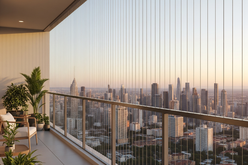 Unlike traditional iron grills, invisible grills blend seamlessly with balconies, windows, and staircases, maintaining a clean and elegant look. Their slim, transparent design ensures safety without making the area feel closed or congested. This makes them an ideal choice for apartments and high-rise buildings where child safety is a top priority.